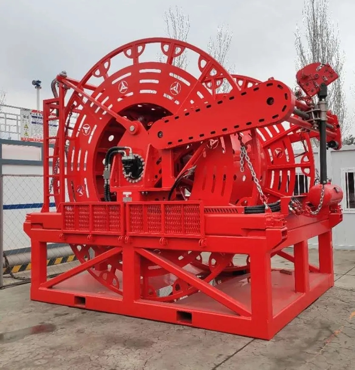 軟管滾筒:一般配置注入頭功力、注入頭控制、防噴器控制3個軟管滾筒,管線長45米左右。(右上圖)