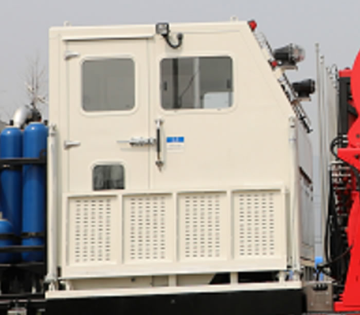 控制室:所有作業(yè)工況下的操作,以及各項參數(shù)的儀表顯示,均集中在控制室操作臺上,包括注入頭、油管滾筒、防噴器、防噴盒、發(fā)動機等電、氣、液控制。控制室采用可升降結(jié)構(gòu),可以清晰地觀察油管滾筒和注入頭的運轉(zhuǎn)狀態(tài)。