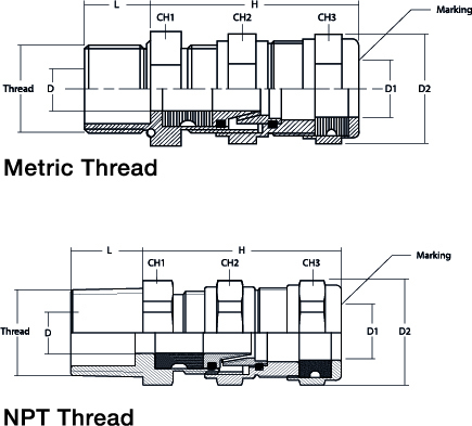 ATEX/IECEx Metallic cable glands for armoured cable offering a double compression configuration.