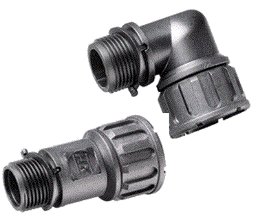 90° compression type fittings incorporating fixed or swivel male threads to provide connection to knockouts and threaded entries. |