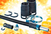 Straight, 45° elbow, 90° elbow, 90° curved elbow, distributors and supports.
