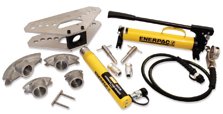 用于高壓管道的彎曲。彎管機配有泵、油缸、機架和彎管工裝,以上部件全部可裝在帶鎖的便攜箱中。