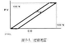 死區:輸入信號改變方向但不致于引起輸出信號的可以觀察到的變化時,輸入信號的可變化范圍。死區是用來描述一種適用于任何裝置的通用現象的名詞。對于閥門組件,控制器的輸出(CO)是閥門組件的輸入,而過程變量(PV)是輸出,如圖1-1 所示。使用術語“死區”時,有必要把輸入和輸出區分開來,并確保測量死區的任何測試在全部負載條件下進行。死區典型地表示為百分比的輸入量程。