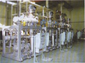 2005年4月,泰悉爾又勝利取得4套羅茨真空泵+干式真空泵機(jī)組訂單,產(chǎn)品將應(yīng)用于中國(guó)石油(CNPC)PTMEG項(xiàng)目中,用于CNPC的羅茨泵+螺桿干式真空泵機(jī)組如圖1所示。
