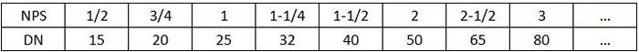 需要注意的是,一般情況下,NPS 與 DN 是有對應(yīng)關(guān)系的,如下表。但是對于 Class 與 PN,除了 HG/T20615-2009 和 SH/T3046 -2013 標(biāo)準(zhǔn)中明確給出了對應(yīng)關(guān)系,其余標(biāo)準(zhǔn)中均未給出一一對應(yīng)關(guān)系,所以不可混用。法蘭規(guī)格的正確描述方法是按照標(biāo)準(zhǔn)規(guī)定的方式書寫,并帶上參照的標(biāo)準(zhǔn)。