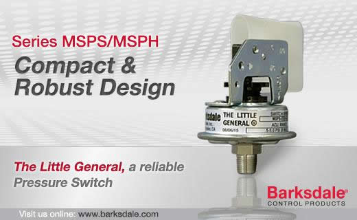 MSPS和MSPH系列壓力開關結構緊湊、經濟實用,性能可靠。此開關有裸露型和外殼型供選擇,能測量和控制高達100 psi的壓力。各種微動開關可用于125 VAC,容納高達20amps的開關電流。擁有UL和CSA認證。該開關可廣泛地用于一般工業應用,也是游泳池和水療加熱器相關應用的選擇。Barksdale MSPS和MSPH是您低壓應用的經濟之選。