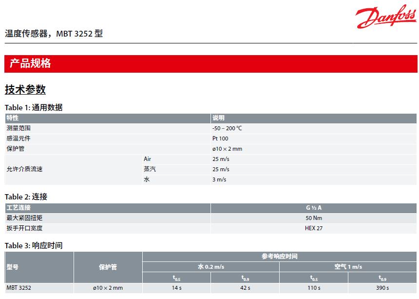 數(shù)據(jù)中心液冷機(jī)柜CDU配套丹佛斯MBT3252 型溫度傳感器