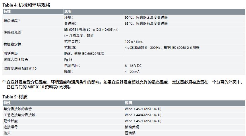 溫度范圍 [°C]: -50 - 200, 傳感器元件類型: Pt, 傳感器元件阻抗 [Ohm]: 100, 保護(hù)管材料: AISI 316 Ti, 電氣連接: 類型 B, 電氣連接尺寸: Pg 16
