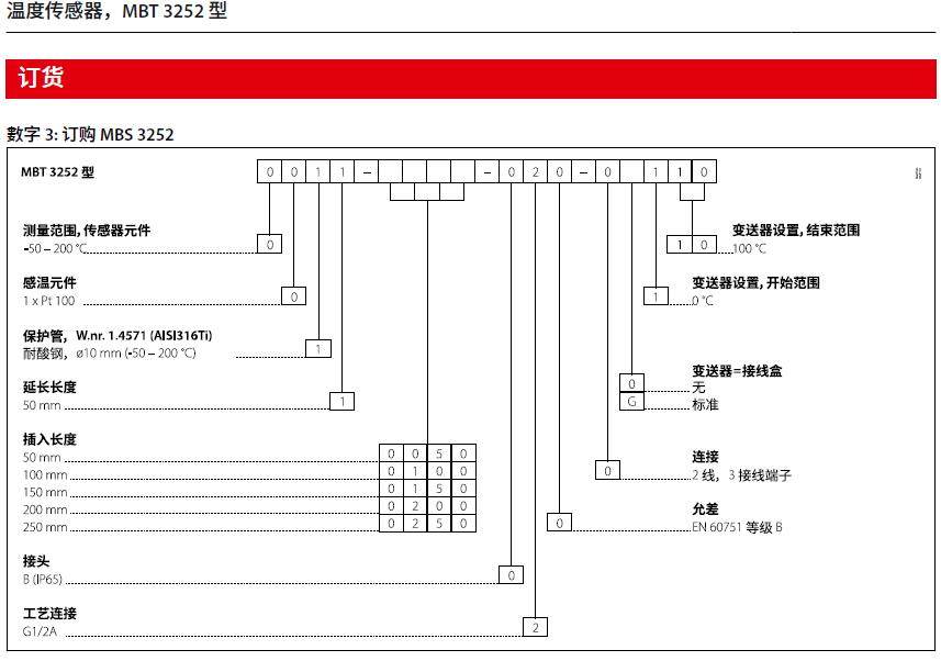 重型溫度傳感器用于在一般工業(yè)應(yīng)用領(lǐng)域中控制冷卻水、潤(rùn)滑油、液壓油和制冷裝置。該溫度傳感器采用標(biāo)準(zhǔn) Pt 100 元件,能夠保證測(cè)量的可靠性和精確性?筛鼡Q測(cè)量插芯配備了硅樹脂電纜,能夠使傳感器具有極強(qiáng)的抗振動(dòng)能力。MBT 3252 型溫度傳感器配備標(biāo)準(zhǔn) B 型 接頭。如果需要,變送器(MBT 9110)可作為 MBT3252 傳感器的內(nèi)置配件進(jìn)行訂購(gòu)。