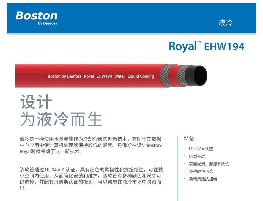 液體冷卻是一種創(chuàng)新技術,使用水作為冷卻介質,以幫助在數(shù)據(jù)中心應用中保持計算機處理器的低溫。丹佛斯設計Boston Royal時考慮到了這一新興技術。UL 94 V-0等級,具有卓越的靈活性和抗扭結性,該軟管設計用于在狹小空間中操作,以簡化安裝和維護。我們提供各種尺寸和顏色,并配有經(jīng)批準的丹佛斯配件,因此很容易進入這個新市場。