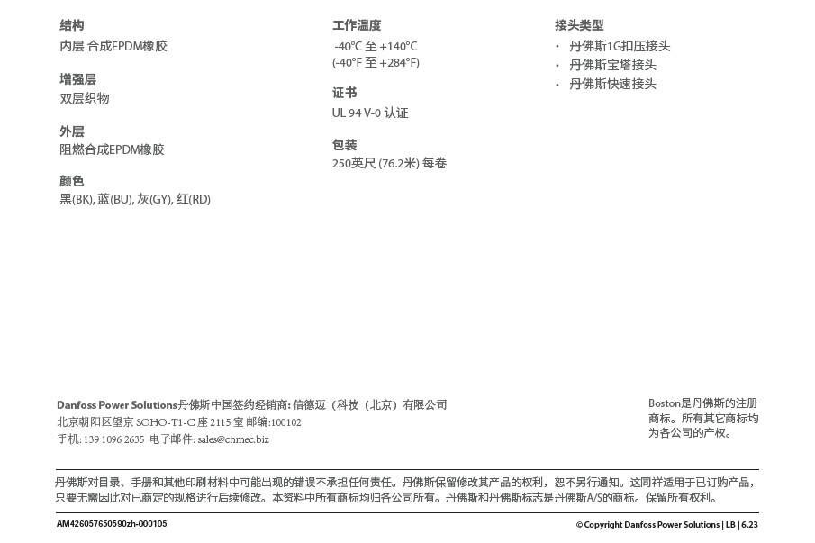 DANFOSS丹佛斯 EHW194 EPDM液冷軟管