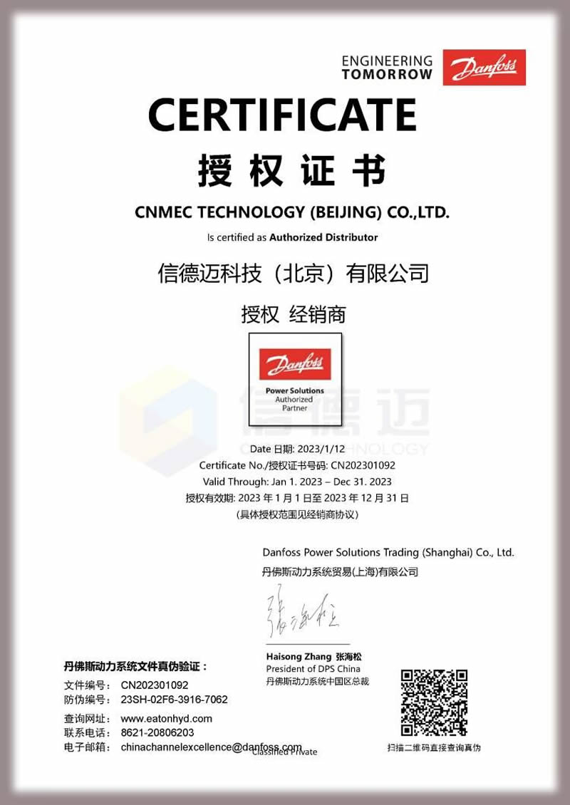 is authorized as Business Partner of Danfoss Sensing Solutions in China mainland