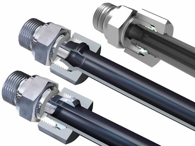 徑向和軸向密封是通過在管子和接頭體之間的卡套的錐面實現的。遞進增加的扭緊力矩保證了一個高的安裝可靠性。