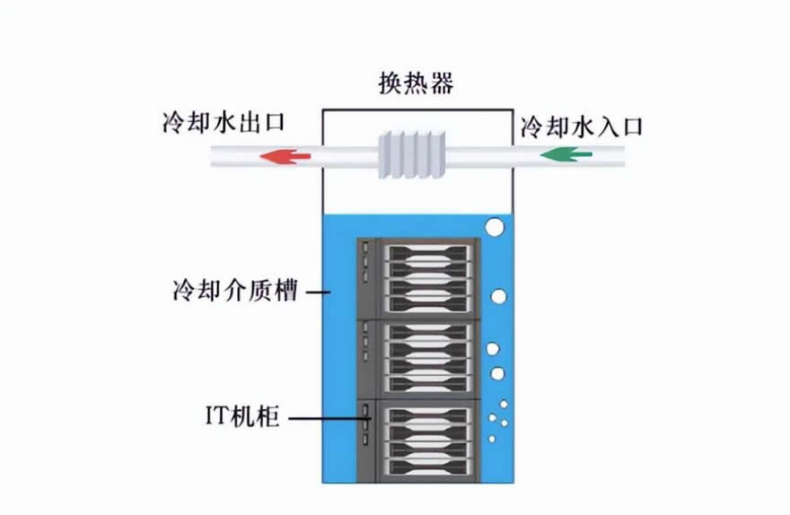 液冷技術,就是直接將液體冷卻系統導入服務器內部散熱,甚至把服務器等需要散熱的設備直接放入冷卻液中(礦物油或者氟化液等傳輸介質)。熱量通過液冷主機傳遞,再通過室外冷卻塔將熱量散發到空氣中。