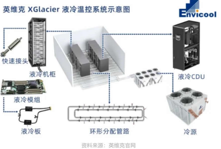 英維克推出Coolinside全鏈條液冷解決方案,打破國外技術壁壘,已實現單機柜200kW批量商用。