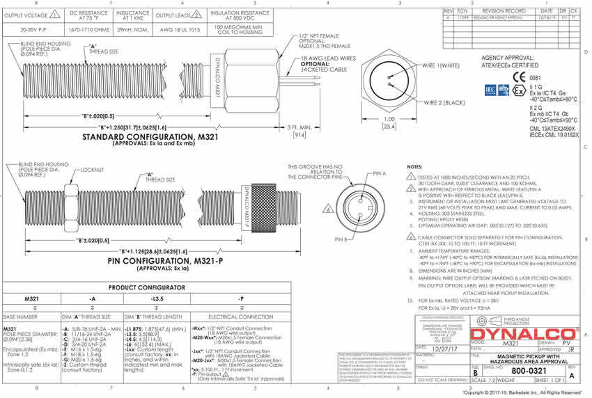 DynalcoM321 magnetic pickup sensor IECEx 批準(zhǔn)的磁性拾音器/速度傳感器