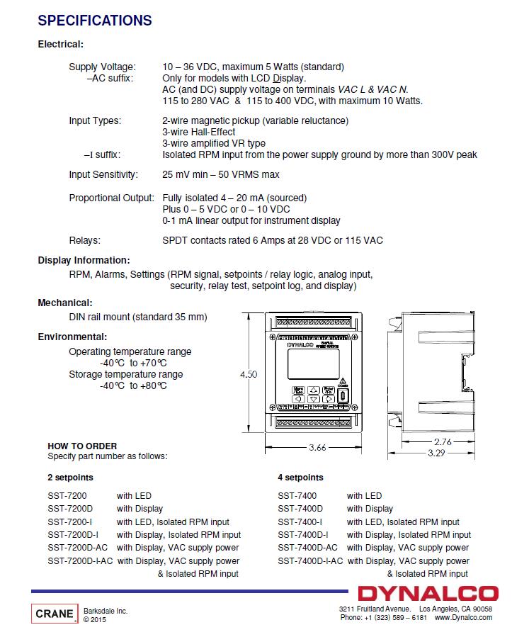 Dynalco SST-7200 / 7200D / 7400 / 7400D Data Sheet