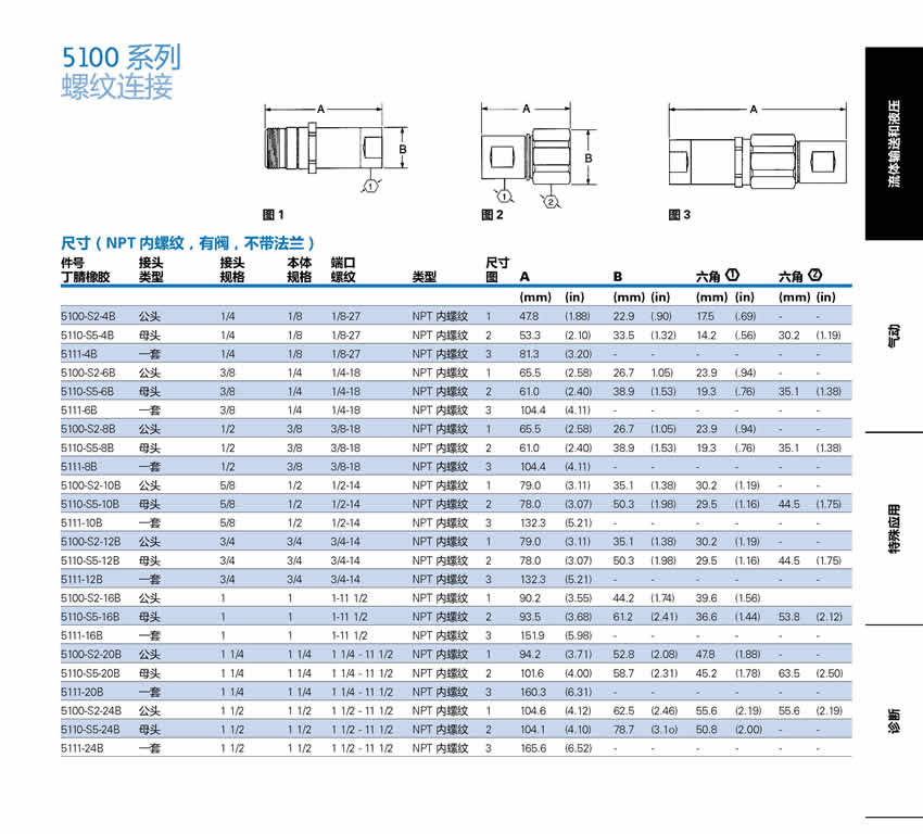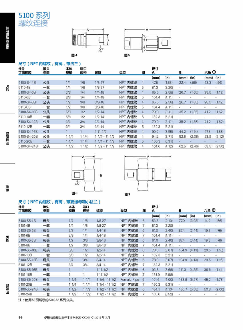 5100-S5-16B 母頭 1 1 1-11 1/2 NPT 內螺紋 6 93.5 (3.68) 111.3 (4.38) 36.6 (1.44)