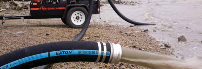 1、吸排水管:一次完整的壓裂操作平均需要用到1200萬升以上的水,現場有100個以上的壓裂水箱,4”為常用的膠管,一般為6-8米長,用于連接壓裂水箱。采油現場的水中會不可避免地混入一些淤泥、砂石、油類物質等,所以在膠管選擇的時候要注意內壁的耐磨性同時,也要關注內壁的耐油性。伊頓的吸排水管EH360為鉆井以及壓力應用特殊設計,具有良好耐磨以及一定的耐弱酸弱堿性能。150psi工作壓力,1:3的安全系數,耐負壓,在提供可靠的安全性能同時,給予產品高的性價比。
