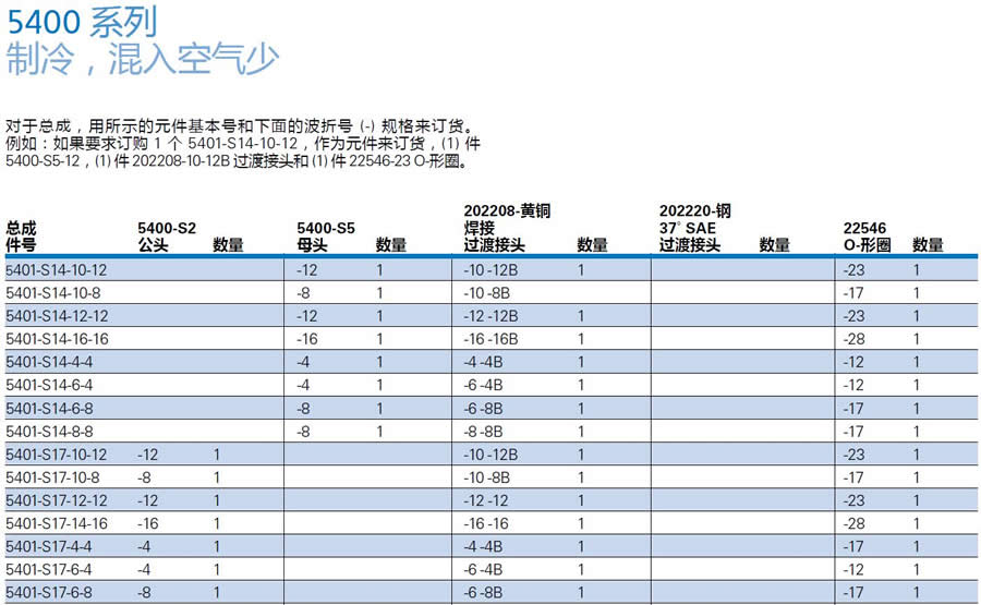 * 規定過渡接頭的外徑管規格要求為 1/16 英寸。例如:–4 接頭帶有 3/8” 外徑管子是 6/16 或 -6。件號則是 202208–6–4。
