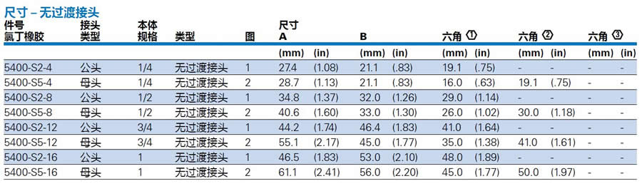5400-S2-16 公頭 1 無過渡接頭 1 46.5 (1.83) 53.0 (2.10) 48.0 (1.89) - - - -