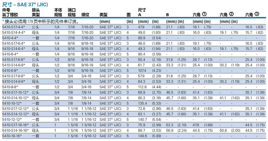 5410-8-8* 一套 1/2 3/4 3/4-16 SAE 37° (JIC) 5 112.8 (4.44) - - - - - - - -