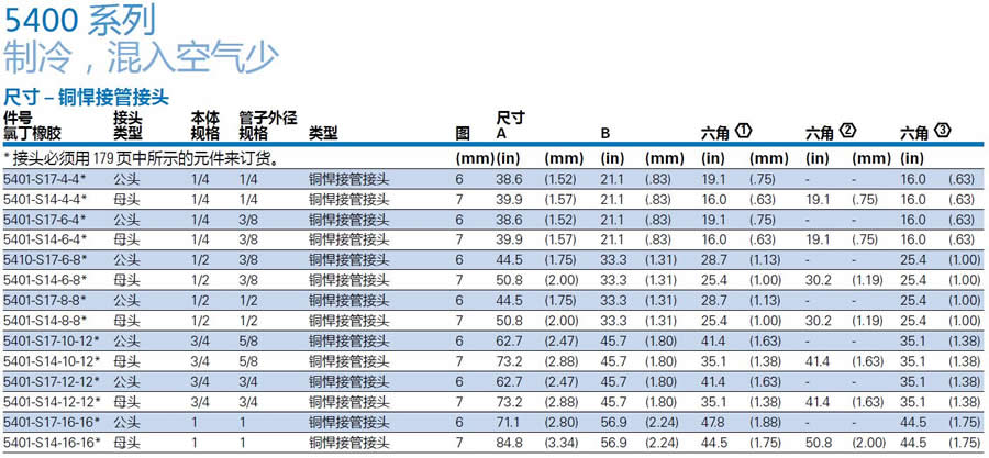 5401-S17-16-16* 公頭 1 1 銅悍接管接頭 6 71.1 (2.80) 56.9 (2.24) 47.8 (1.88) - - 44.5 (1.75)