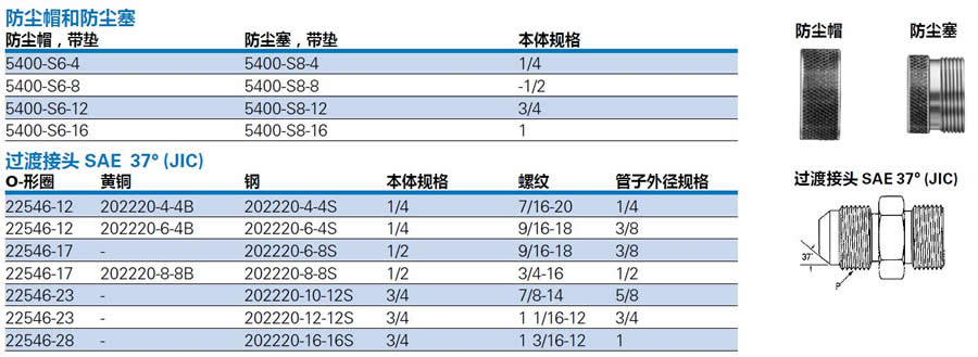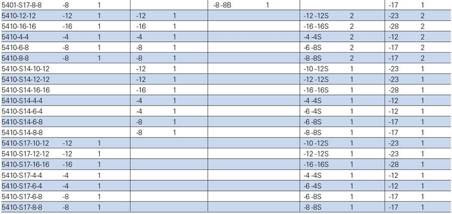 5410-6-8* 一套 1/2 9/16 9/16-18 SAE 37° (JIC) 5 107.4 (4.23) - - - - - - - -