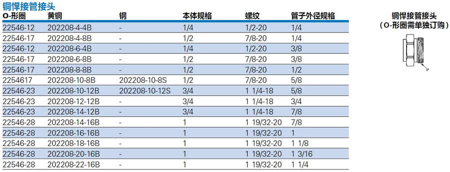 22546-17 202208-4-8B -1/2 7/8-20 1/4 22546-12 202208-6-4B -1/4 1/2-20 3/8 22546-17 202208-6-8B -1/2 7/8-20 3/8 22546-17 202208-8-8B -1/2 7/8-20 1/2