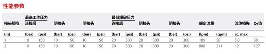快速接頭的其他主要特征包括:斷開時的溢漏最少,特殊的鎖定銷和杠桿手柄可以防止意外斷開,而彩色保險杠則可以避免交叉連接。這個一英寸的快速接頭還具有303不銹鋼結構和EPDM O形圈密封,分別具有150和300 PSI的工作壓力和爆破壓力。Additional key features of the coupling include minimal spillage on disconnect, and a special locking pin and lever handle to prevent accidental disconnects, and color coded bumpers to avoid cross connections. The one-inch coupling also features 303 stainless steel construction and EPDM O-ring seals with 150 and 300 PSI operating and burst pressures respectively.