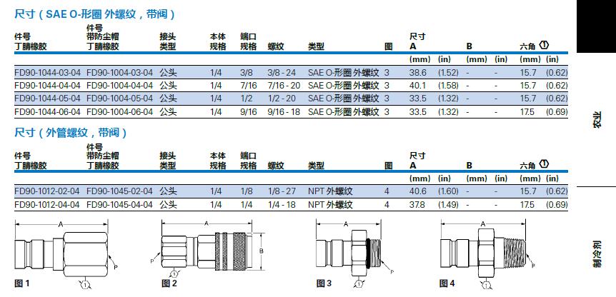 FD90-1046-06-04 FD90-1047-06-04 公頭 1/4 M14 M14x1.5 O-形圈外螺紋 5 38.5 (1.52) --19.1 (0.75)