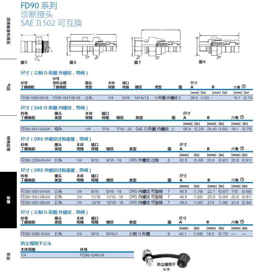 件號帶防塵帽 接頭 本體 端口 尺寸