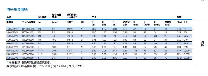氟橡膠三元乙丙橡膠(in) (mm) BSPP 圖D E F 對(duì)邊寬D E F 對(duì)邊寬(lbs) (g)