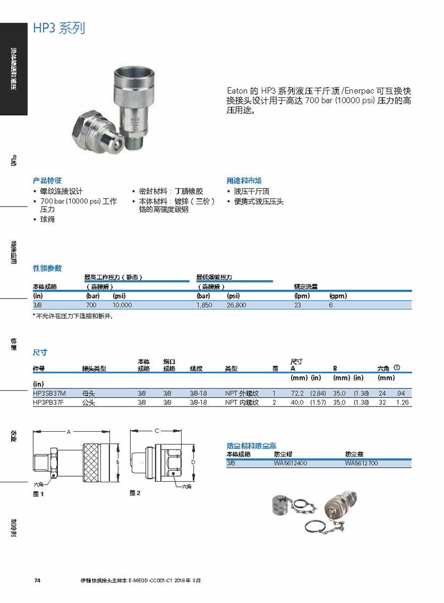 Eaton HP3 系列液壓千斤頂/Enerpac 可互換快換接頭