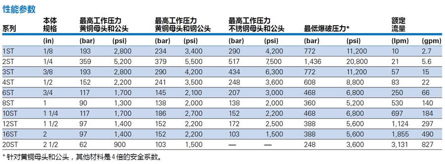 不銹鋼接頭最大可承受:7,500psi (520bar)