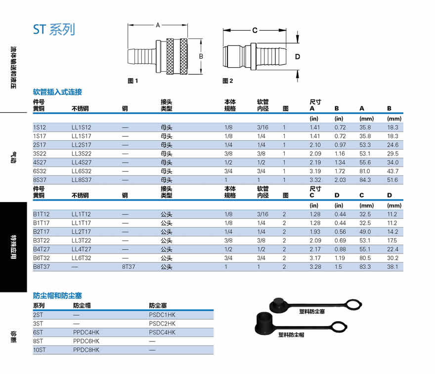 - 備件:部分尺寸可選防塵帽和防塵塞