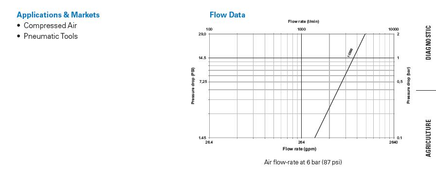 ***This flow rate is the maximum recommended for a suitable output from a pneumatic tool- For applications needing higher flow rates, it is recommended to select a larger size coupling-