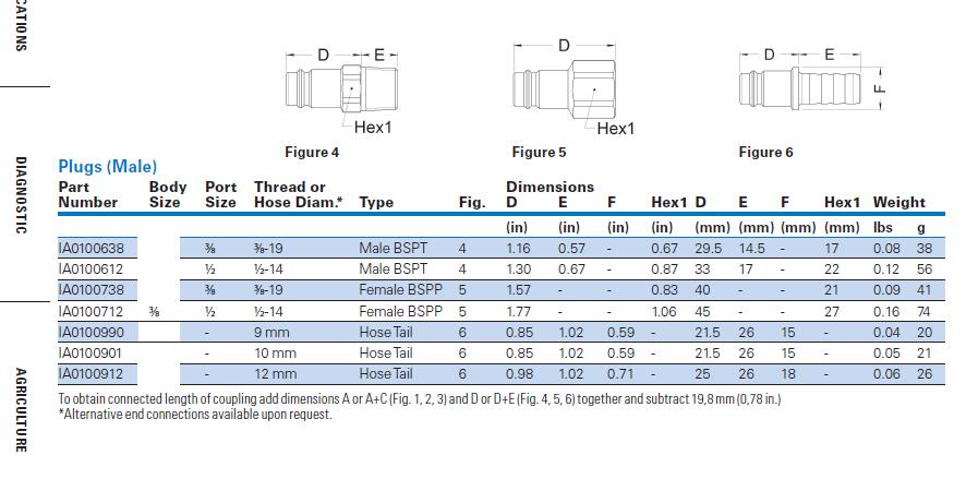 To obtain connected length of coupling add dimensions A or A+C (Fig- 1, 2, 3) and D or D+E (Fig- 4, 5, 6) together and subtract 19,8 mm (0,78 in.)