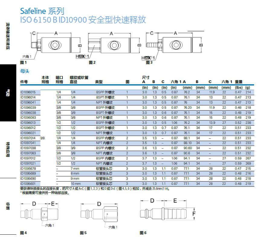 本體端口螺紋或軟管尺寸件號規(guī)格規(guī)格直徑類型圖 D EF六角 1D E F六角 1重量
