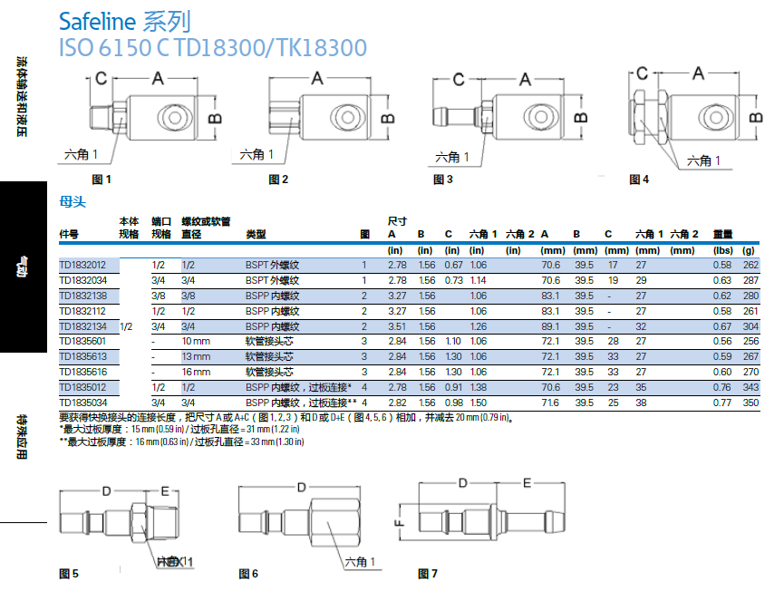 Safeline 系列 ISO 6150 C TD18300/TK18300工業氣動可互換快換接頭