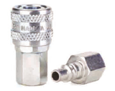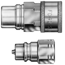 Hansen FD45 Series Steel Quick Disconnect Couplings are an industiral interchange popular in North America. Features rugged ball latch mechanism with automatic self-sealing poppet valves. |