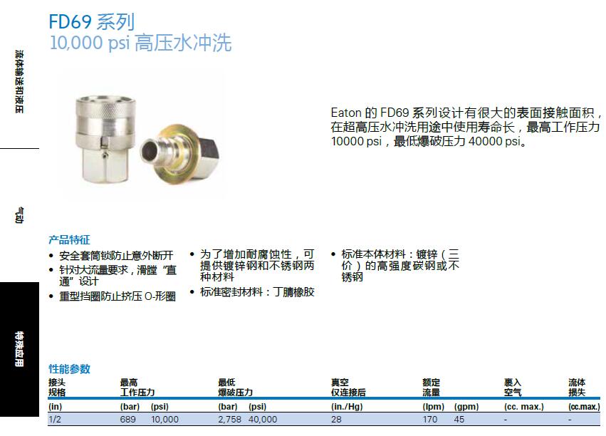 FD69系列 10,000 psi 高壓水沖洗 EATON FD69 Series 10,000 psi Water Blast Complete Coupling