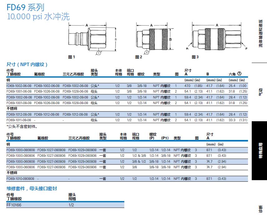 FD69-1001-06-08 FD69-1026-06-08 FD69-1028-06-08 母頭 1/2 3/8 3/8-18 NPT 內(nèi)螺紋 2 54.1 (2.13) 41.1 (1.62) 31.8 (1.25)