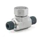 Parker LC-Series Lift Check Valves are a compact design and utilize a gravity assisted poppet to seal a wide variety of temperature extremes in instrumentation systems 。Parker's LC-Series Lift Check Valve has been designed for a wide variety of temperature extremes from -100?F to 900?F (-148?C to 482?C). To achieve this performance, the check valve must be mounted in the proper orientation as the bonnet nut is clearly marked. In contrast to a general purpose lift check valve, the LC-Series has been designed to prevent flow in the reverse direction to within 99.9% of forward flow. This is ideal for liquid service applications. The gravity assisted poppet uses back pressure to achieve a seal. Many industrial valves of this type require additional fittings (adapters) when connecting to tubing system. The LC Series does not require adapters and offers both single ferrule and two ferrule compression end connection integral to the valve body