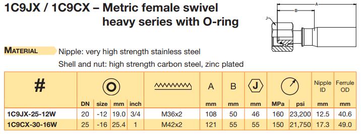 Type ?M? female swivel, Metric female swivel heavy series with O-ring, Medium pressure tube nipple, 1502 Hammerlug union female, 2202 Hammerlug union female, 1502 Hammerlug union male, 2202 Hammerlug union male |
