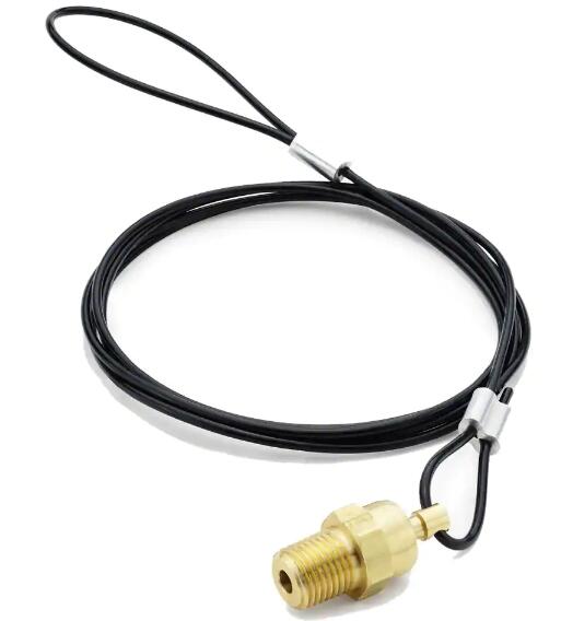 Parker's lanyard valve compact design is ideally suited for releasing condensate from air tanks. Removing condensate allows for more volume of air in the system reducing compressor load and extending compressor life. A pulling action exerted on the cable cocks the stem, allowing condensate to pass through the valve. Releasing the cable resets the stem which returns the valve to its closed position. Parker's lanyard valve is available in 36”, 48” and 60” cable lengths.
