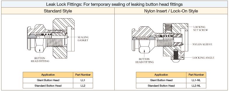 Parker PGI's Leak Lock Fittings are used for emergency and temporary sealing of leaking Giant or Standard Button Head Fittings.