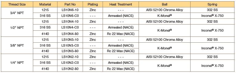 1215 | 316 SS | 4140 | Consult factory for additional materials |
