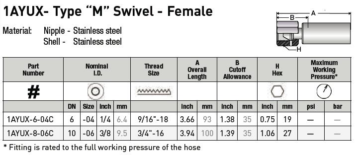 Crimped Thermoplastic Oil & Gas Hose Fittings, UX Series 型號