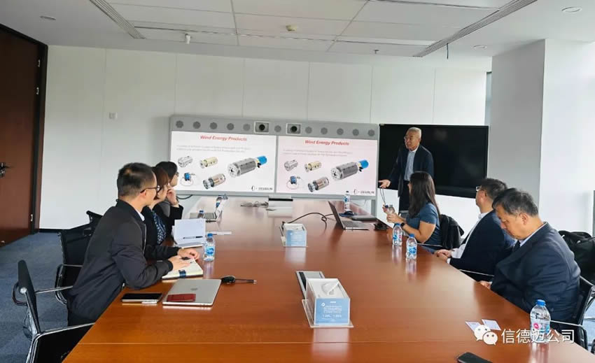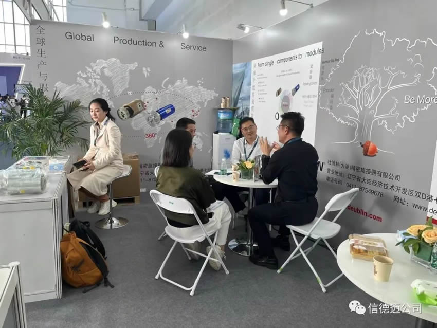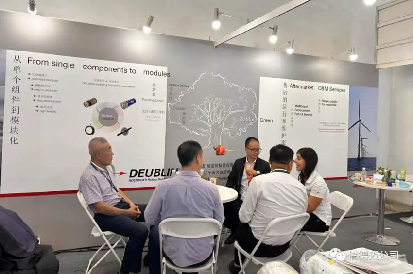 10月19日展會期間,Deublin公司和信德邁公司代表一行人拜訪了金風科技。進行了液壓旋轉接頭和6MW電氣滑環產品技術交流,達成一致在當下項目合作的基礎上,擴大在未來的項目中的交流和更多合作。